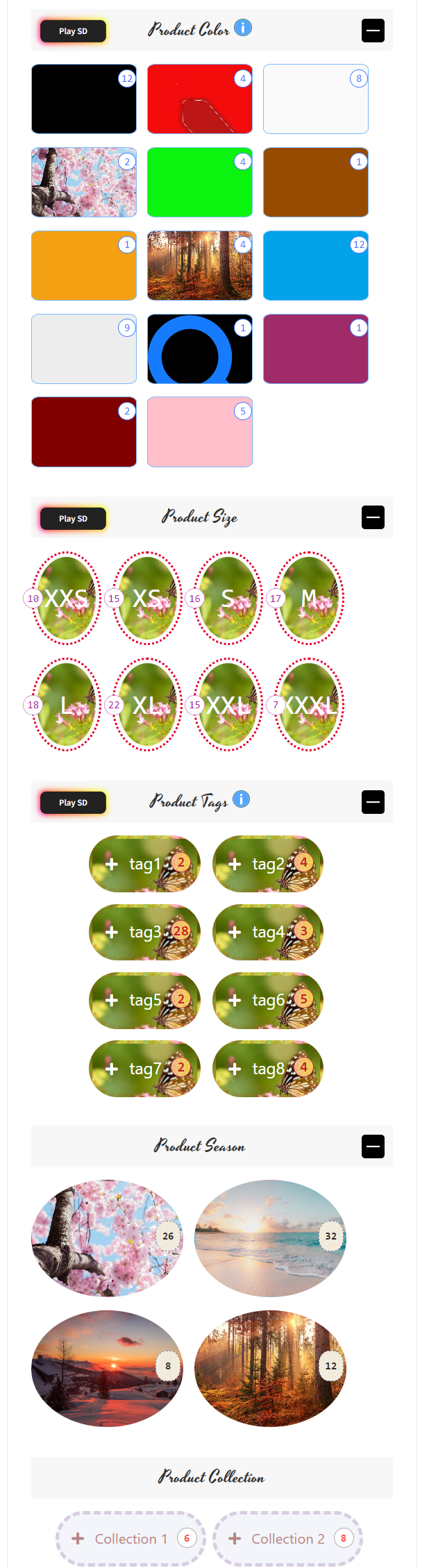 See the demo site please https://demo-sd.products-filter.com – using ‘Play SD‘ button there for filter-sections you will see the power of this extension in action.